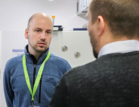 Jan Brajer, head of the Industrial Laser Development department, met up with the group and accompanied them into the clean laboratories of the HiLASE Centre. A short introduction of the most recent activities of the HiLASE Centre follower, as well as an excursion into the Laser Shock Peening (LSP) experimental halls, where the visitors learned more about this technology and its potential in Czech industry.