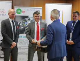 In the 2023 edition, we tested laser windows equipped with anti-reflective coatings on both sides. Of all the anonymised samples tested at our ISO certified LIDT laboratory, the AR window with a value of 0,6 J/cm2 performed the best. We were proud to hand over the award to the representatives of EKSMA Optics on Wednesday 28 June at the Laser Technologies workshop of the Czech Optical Cluster at the Laser World of Photonics, Munich.