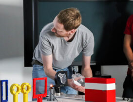 Afterwards, Martin Hanuš, junior researcher from the High Energy Slab Lasers group, took over the excursion. He introduced the Schlieren system, an optical tool used to visualize the change or non-uniformity of the refractive index of (not only) air.