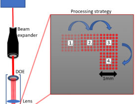 Vědci z Centra HiLASE a společnosti HOLO/OR vyvinuli metodu, jak efektivně nanostrukturovat velkou plochu pomocí pouhých několika laserových pulzů. „Principem je jedinečná kombinace vysokoenergetického ultrakrátkého pulzního laserového systému s optickou sestavou pro fokusaci a dělení vstupního svazku do uspořádané čtvercové matice 201×201 sub-svazků.“ vysvětluje Petr Hauschwitz, vedoucí týmu Laserové mikroobrábění Centra HiLASE. Dále upřesňuje, „Čtvercová oblast o ploše 1mm2 tak může být současně strukturována 40 401 svazky o průměru pouhých 4,9 µm s produktivitou přesahující 8 miliónu mikrospotů za sekundu. V rámci každého z těchto mikrospotů navíc vzniká periodická nanostruktura se specifickou funkcí, např. za účelem změny smáčivosti povrchu.“