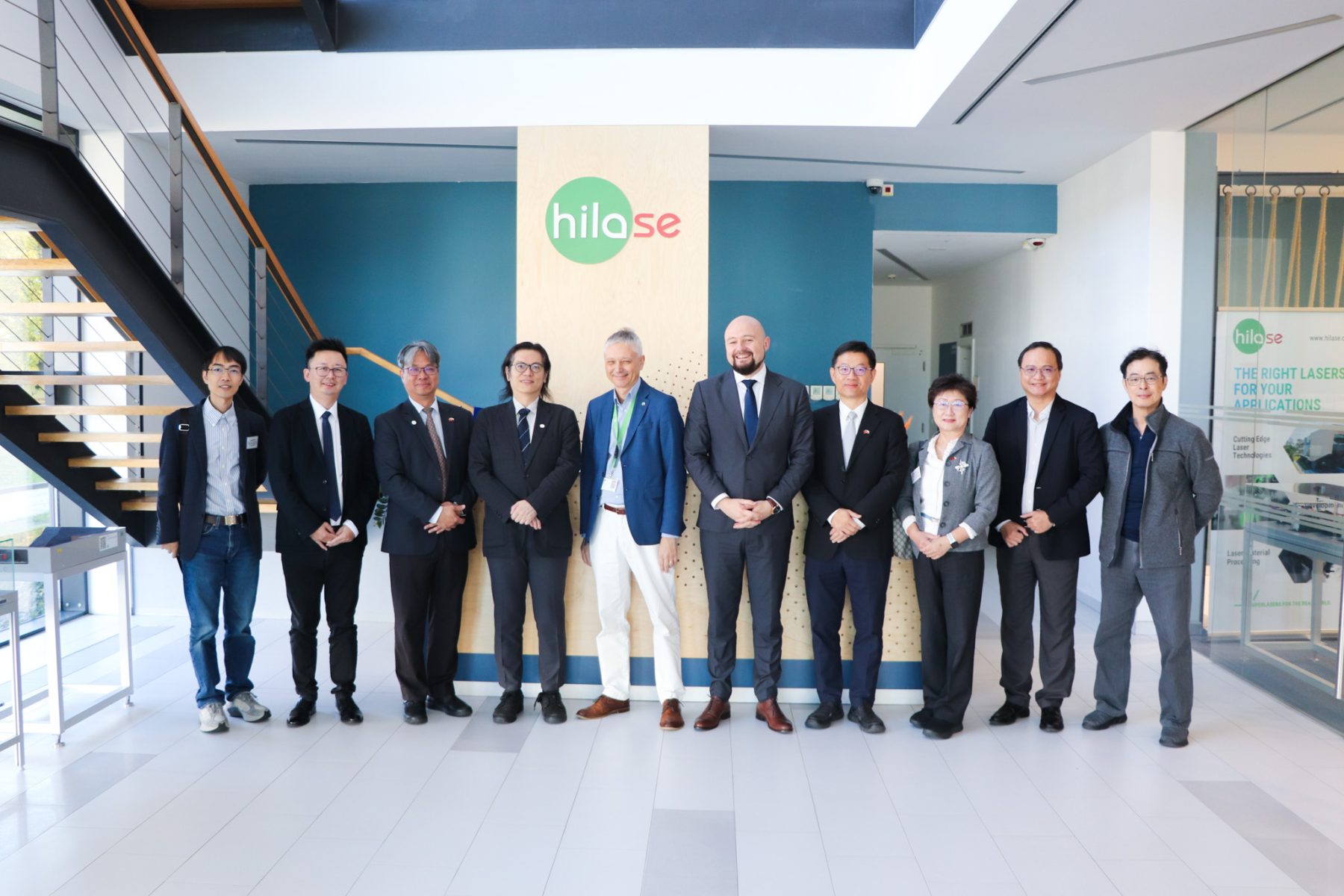 Centrum HiLASE otevřelo své dveře tchajwanské delegaci, která se chtěla podívat, jak vysokovýkonné lasery formují budoucnost výroby a materiálů. Po vřelém přivítání od Tomáše Mocka, vedoucího centra, a Sanina Zuliće, International Business Development Managera, se hosté ponořili do světa laserových inovací – od aplikovaného výzkumu po reálné využití v průmyslu, vesmíru či obraně.