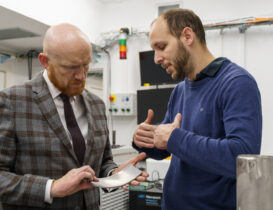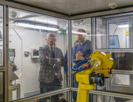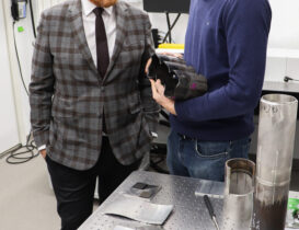 S panem velvyslancem a paní poslankyní se v lobby Centra HiLASE setkal jeho vedoucí Tomáš Mocek, který představil hlavní oblasti výzkumu a strategické směřování Centra se zaměřením na spolupráci mezi Českou republikou a Velkou Británií. Následovala návštěva experimentální haly pro Laser Shock Peening (LSP) v doprovodu vedoucího tohoto týmu, Jana Kaufmana.