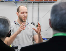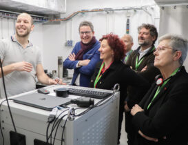 Skupinu v lobby Centra přivítal jeho vedoucí Tomáš Mocek, aby představil základní aktivity a strategické směřování našeho výzkumu. Poté návštěva zavítala nejen do experimentálních hal pro Laser Shock Peening (v doprovodu Jana Kaufmana a Jana Šmause) a Laser Micromachining (spolu s Petrem Hauschwitzem), ale měla rovněž příležitost si prohlídnout čisté laboratoře Centra. V nich fungování laserových systémů BIVOJ a PERLA vysvětlili Martin Smrž, Jiří Mužík a Jan Vanda.
