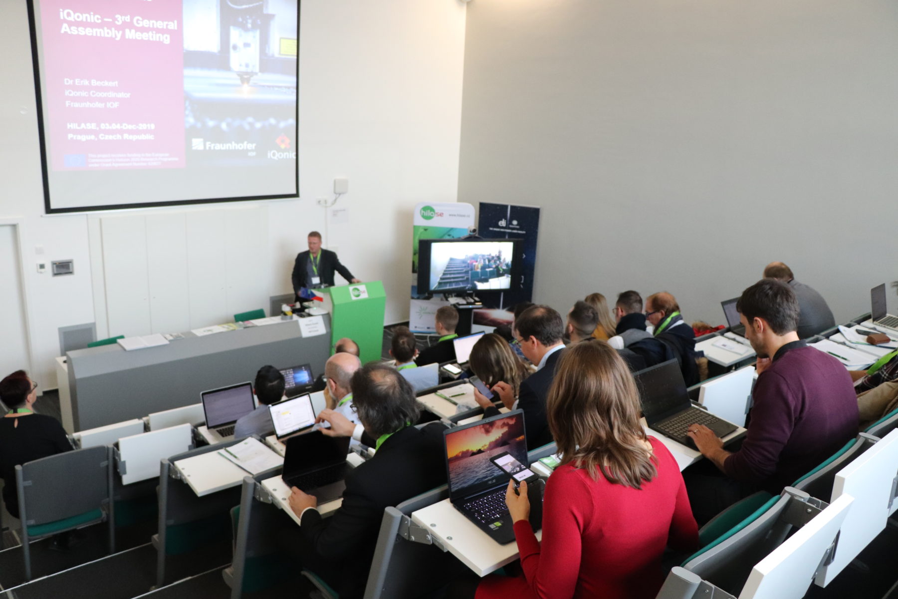 On the 3rd and 4th December the 3rd General Assembly Meeting of the iQonic project took place at HILASE Centre that is a proud member of the project. The vision of IQONIC is the development of a holistic framework applicable both to new and existing manufacturing lines of opto-electronics to achieve flexibility, zero-defect production, and sustainability. At the meeting the progress in the project was discussed, followed by a formal meeting of the steering bodies of the project. All participants were provided with a tour around the HiLASE Centre premises, including top-class laboratories and stations for Laser Shock Processing and Laser Induced Damage Threshold.