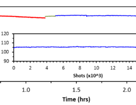 A total of 4.3 × 10^4 shots at energies in excess of 100 J have been completed over a series of runs, with long term energy stability of 1% RMS recorded over a continuous 1-hour period. An example of long-term operation of 100 J laser is shown in Figure 3 below.
