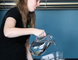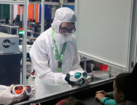 The group had an opportunity to take a peek inside the clean laboratories and try several optics experiments. Among other things, they saw our infinity cube constructed with semi-transparent mirrors, used UV lights to draw on luminescent paper, and found out how hydrogel balls can be hidden in a tank of water.