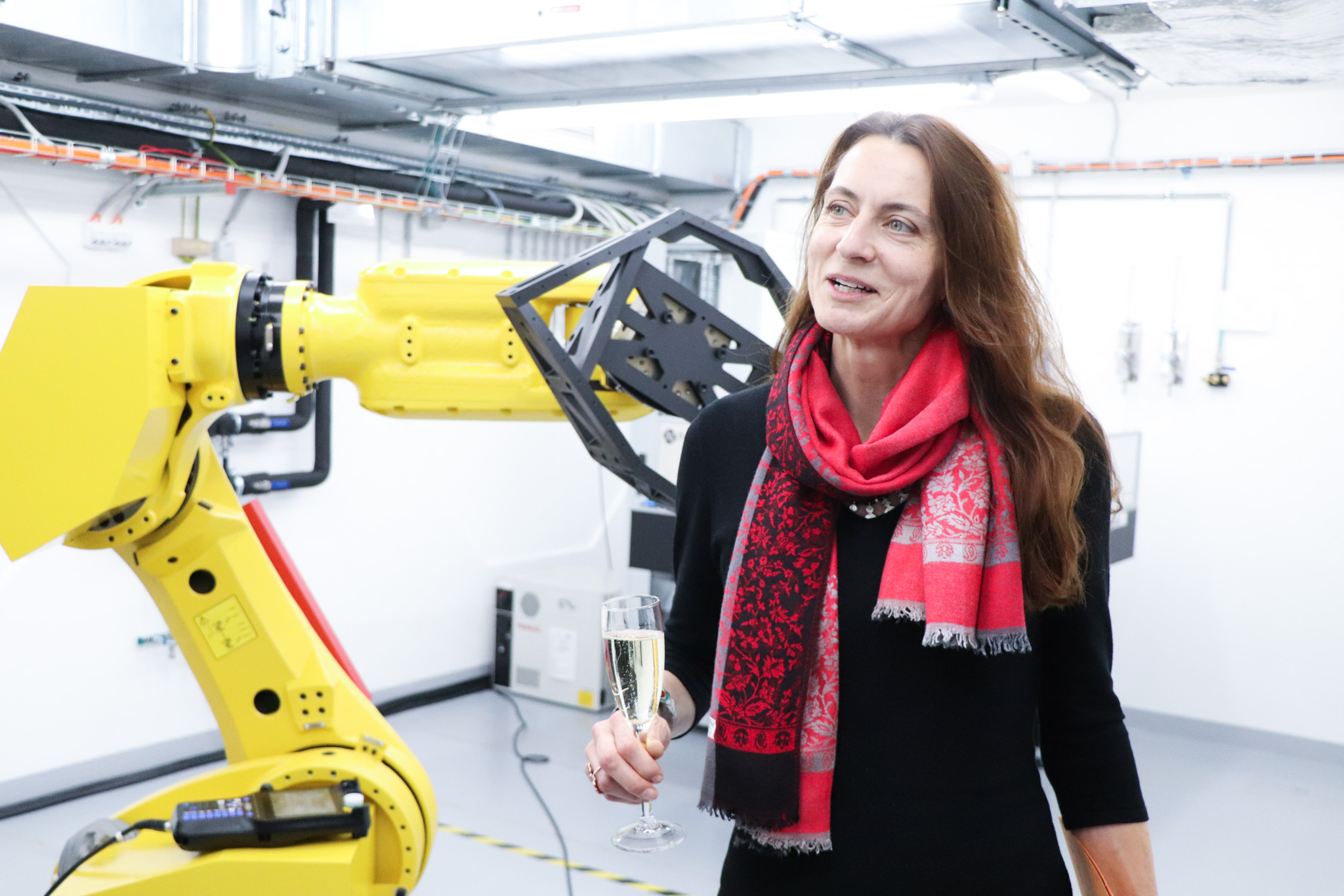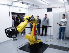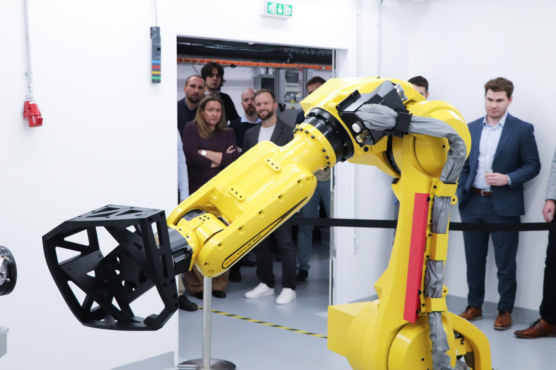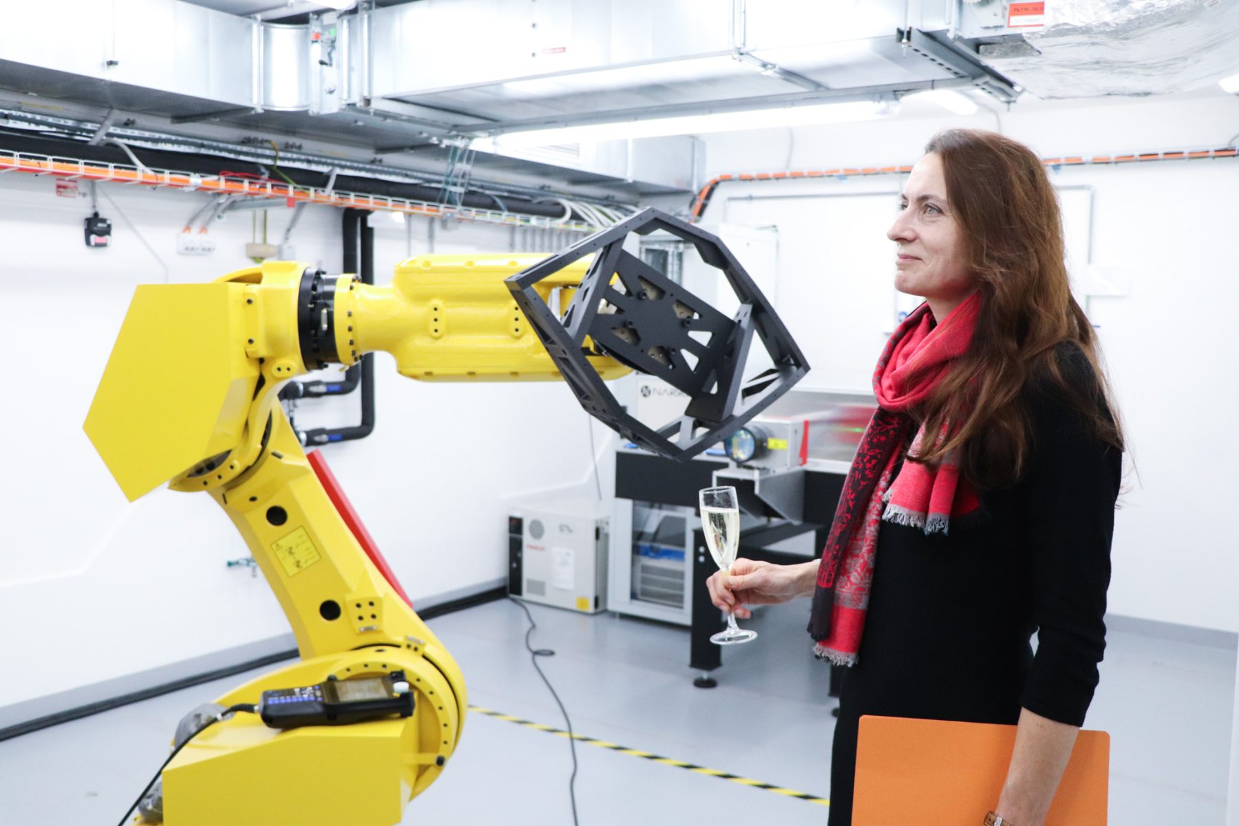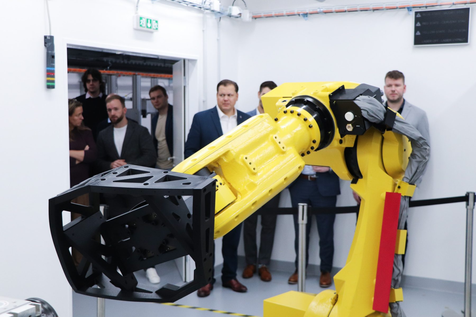 Following the ribbon cutting, the ceremony continued with the introduction of the new robotic workstation. To officially mark its launch, Radka Konderlová, Director General for Industrial Cooperation at the Ministry of Defence, performed a symbolic “christening” of the robot.