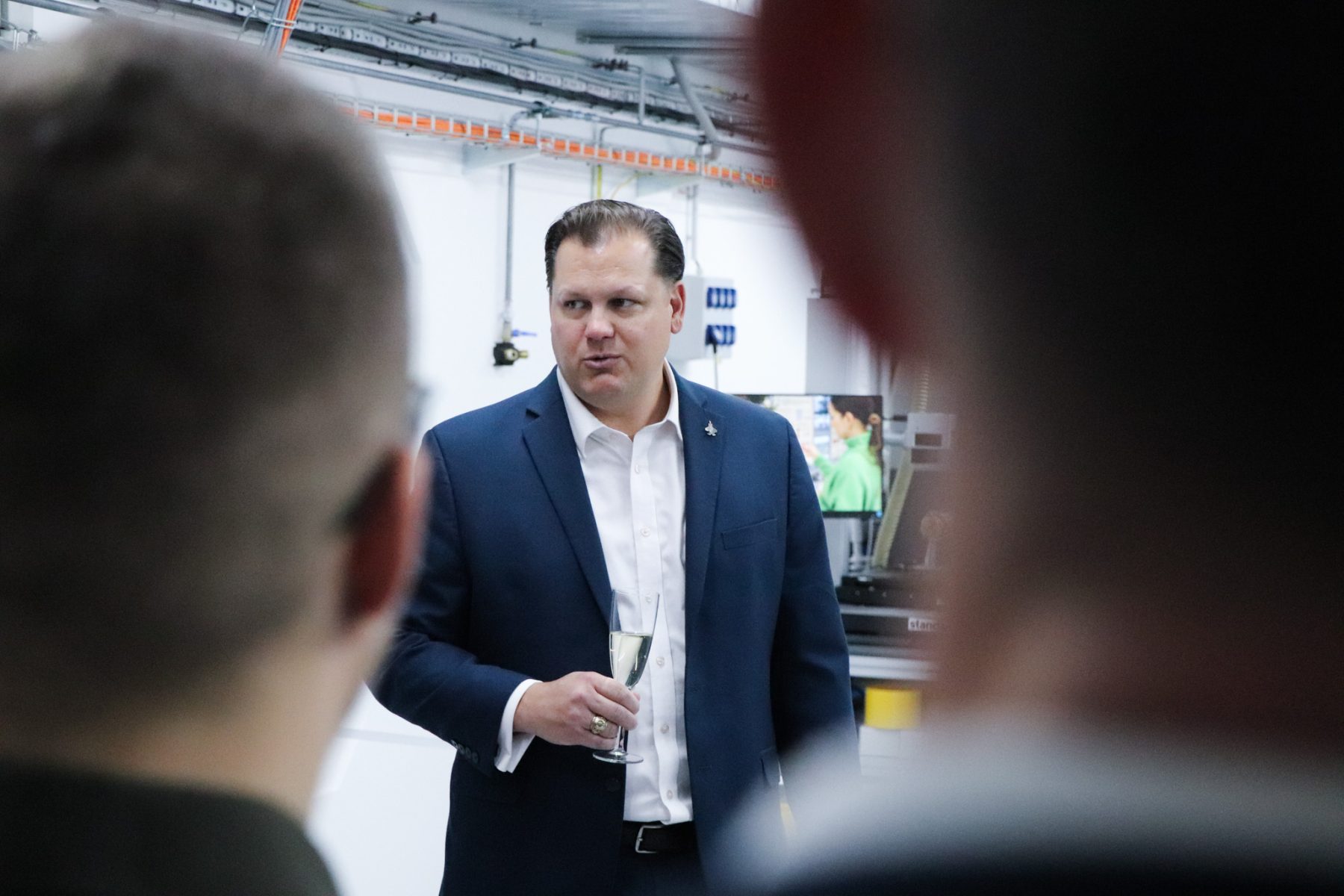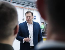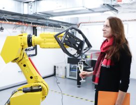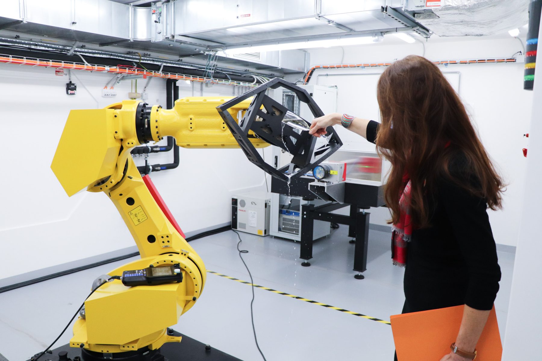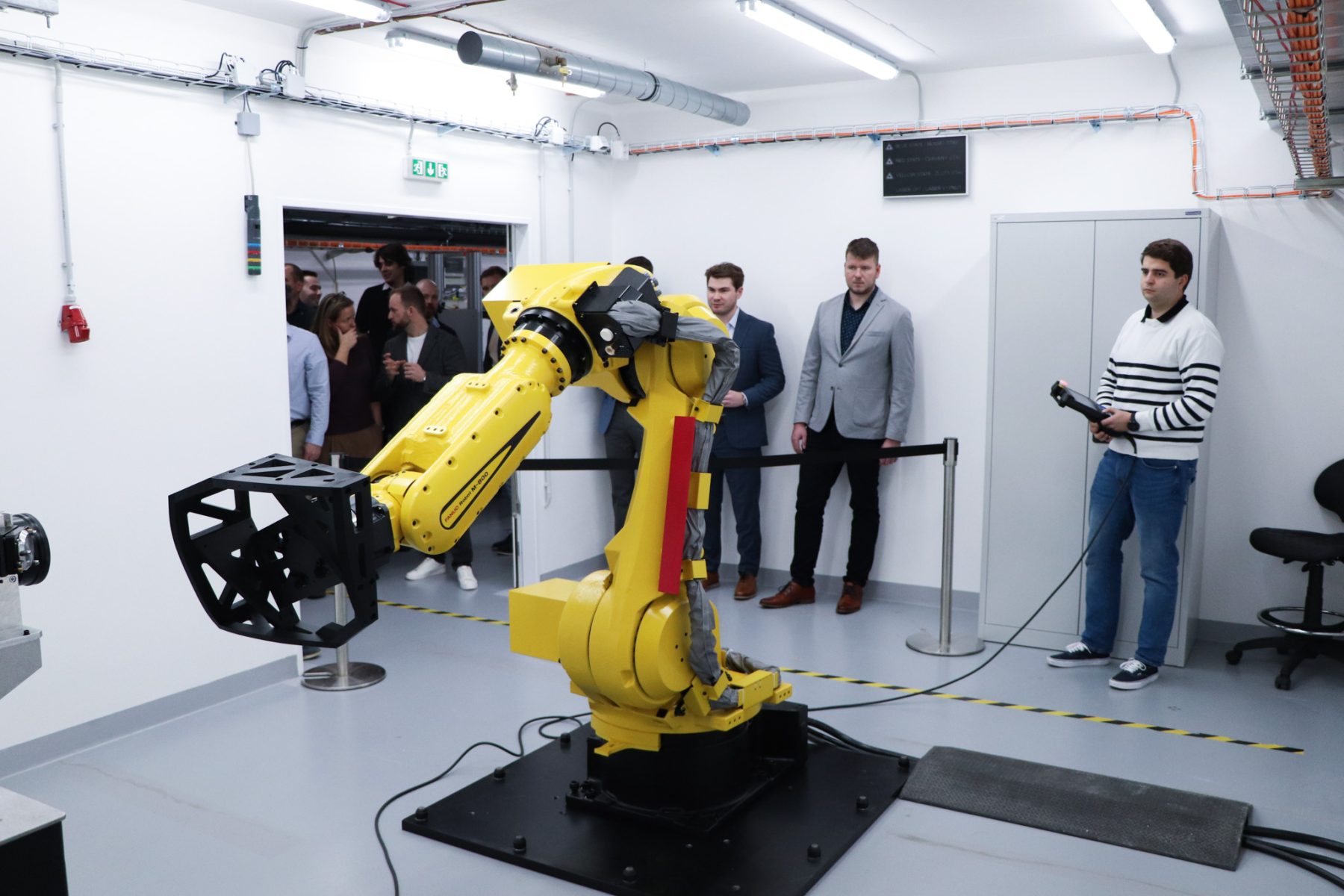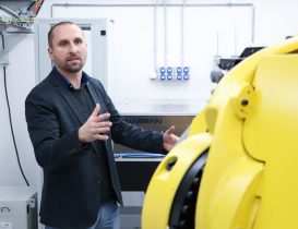 Following the ribbon cutting, the ceremony continued with the introduction of the new robotic workstation. To officially mark its launch, Radka Konderlová, Director General for Industrial Cooperation at the Ministry of Defence, performed a symbolic “christening” of the robot.