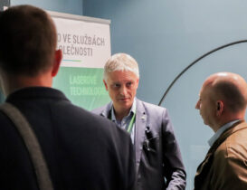 Tomáš Mocek, head of the centre, welcomed the group in the lobby. He shared the research focus of the HiLASE Centre and the successes of recent years with the visitors, representatives of organisations from Hungary, Romania and the Czech Republic. They discussed, among other things, Laser Shock Peening (LSP) and its benefits to industry, or the world records reached using the PERLA and BIVOJ lasers. Also, the implementation of the green and digital transitions as well as the sustainability in Europe’s value chains were discussed.