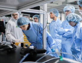 In the company of Jan Kaufman, Team Leader of Laser Shock Peening (LSP), and Matěj Žáček, Science and Research Officer, they first visited the clean laboratories. Here, they learned about the PERLA and BIVOJ laser systems, their development and applications, as well as working in a laser laboratory.