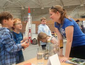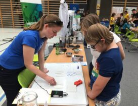 Throughout the Thursday afternoon, the school’s sports hall was transformed into a “Science Square” with dozens of stands where visitors could, for example, program their own robot, imprint a trilobite, isolate DNA from saliva or shoot a rocket.