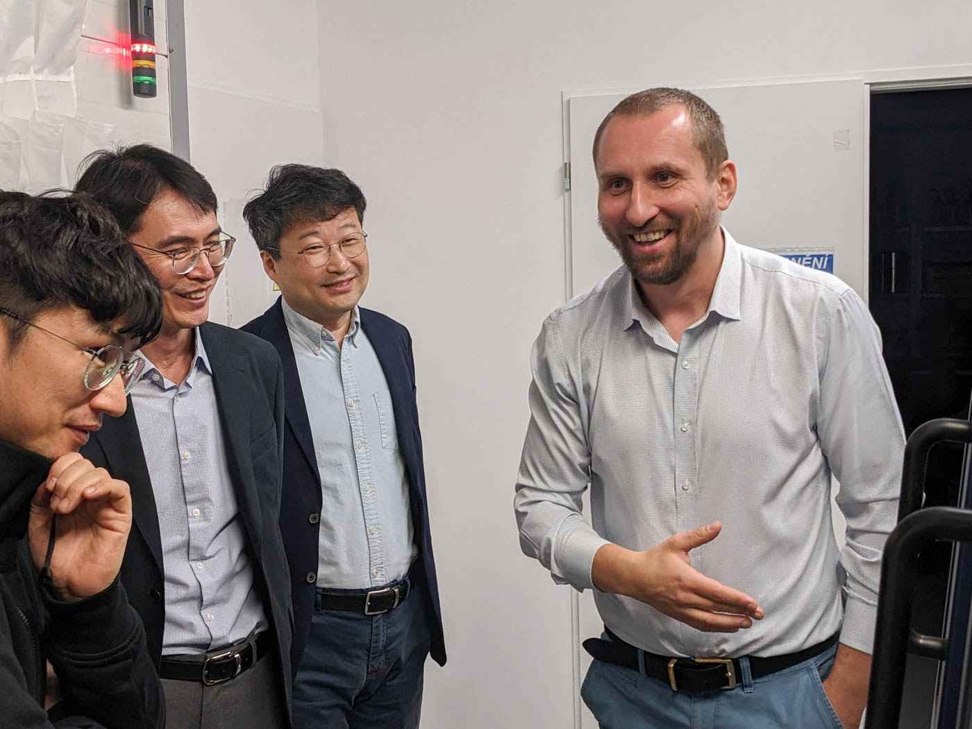 Afterwards, the delegation moved to the LSP experimental halls, where Jan Brajer and Sanin Zulic showed the visitors the Centre‘s LSP stations, shared some samples treated with the technology and the possibilities of collaboration with Korean institutions, and answered the visitors‘ questions.