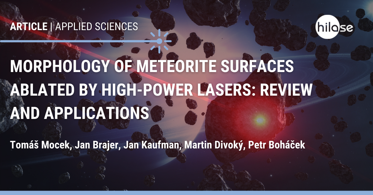 Researchers of the HiLASE Centre team, including Tomáš Mocek, Jan Brajer, Jan Kaufman, Martin Divoký and Petr Boháček, are the co-authors of a recently published research paper on Morphology of Meteorite Surfaces Ablated by High-Power Lasers: Review and Applications. The article published in the journal of Applied Sciences (MDPI) summarizes the results of numerous meteorite laser ablation experiments performed by several laser sources.