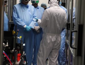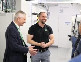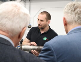 Tomáš Mocek, head of the HiLASE Centre, welcomed the group in the lobby of the HiLASE Centre and introduced the main technologies that it focuses on. Next, they visited the clean laboratory where the high energy nanosecond laser system BIVOJ is developed. Lastly, the group was joined by Jan Brajer, head of the Industrial Laser Applications department, who showed them to the experimental hall for Laser Shock Peening.