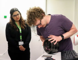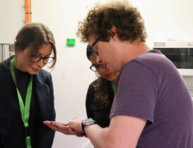 After the lecture and discussion, the excursion moved to the LSP experimental hall, where Ph.D. student Marek Böhm introduced how the laser peening process works and outlined in which industries it has the greatest potential for use.