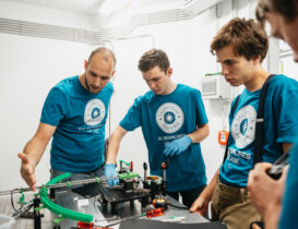 Ve dnech 17. – 19. září 2022 proběhlo v laserových centrech HiLASE a ELI Beamlines finále Talentové akademie 2022. Finalisté měli tentokrát za úkol sestavit optický systém, díky němuž by mohli nahlédnout na částice o velikosti pouhých stovek nanometrů. “Laserový svazek procházející vzorkem malých částic přítomných ve vodě nebo vzduchu se začne rozptylovat. Když změříme, jakou intenzitou se rozptýlí do různých úhlů, můžeme spočítat velikost těchto částic,” popisuje základ letošního studentského úkolu experimentální vědec Martin Přeček z ELI Beamlines. “Aby vše fungovalo, bylo nutné zapojit spoustu elektroniky, programování, 3D tisku a i samotné optiky. To vedlo k tomu, že řešení našich 3 studentských týmů byla zcela odlišná a naprosto originální,” dodává k samotné práci v laboratoři laserový fyzik Jan Kaufman z Centra HiLASE.