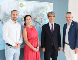 Velvyslanec Hong se setkal s HiLASIÁNY Tomášem Mockem (vedoucím centra HiLASE), Janem Brajerem (vedoucím Průmyslových aplikací laserů) a Janou De Merlier (vedoucí grantové kanceláře HiLASE a ředitelkou klastru STAR). Hovořili o našem rozsáhlém portfoliu spolupráce a jeho dopadu na regionální a mezinárodní inovace, přičemž zdůraznili klíčovou roli ekosystému STAR a poukázali na paralely s proslulým korejským Daedeok Innopolis. Obě iniciativy se zaměřují na vytváření synergií mezi výzkumnými institucemi a hi-tech průmyslem a podporují inovace a hospodářský růst. Toto srovnání poskytlo společný základ pro diskusi o osvědčených postupech v oblasti vědeckotechnických oblastí.