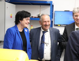 Tomáš Mocek, vedoucí Centra HiLASE návštěvu přivítal v lobby Centra a představil hlavní technologie, na které se zaměřuje. Následovala exkurze v čistých laboratořích, ve kterých je vyvíjen vysokoenergetický nanosekundový laserový systém BIVOJ. V neposlední řadě se ke skupině připojil také Jan Brajer, vedoucí oddělení průmyslové aplikace laserů, který je provedl experimentální halou pro Laser Shock Peening.