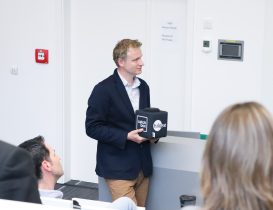 Následovala prezentace zastupitelů firmy Toliman a setkání uzavřel Jan Vanda (koordinátor vesmírných aktivit), který představil, jak se Centrum HiLASE zapojuje do vesmírného výzkumu v rámci programu Vesmír pro lidstvo i mimo něj.