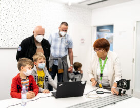 Na 350 nadšenců pro vědu přišlo navštívit Centrum HiLASE během Noci vědců. Kromě komentovaných prohlídek a přednášky na téma Lasery a čas si návštěvníci (a nejen ti malí) užívali bohatého doprovodného programu. Proplétali se laserovým bludištěm po vzoru Jamese Bonda a při střelbě z laserové pistole měřili své síly s našimi super výkonnými lasery (ty dokáží vystřelit až 200 tisíckrát za vteřinu!). Kromě toho si prostřednictvím virtuální reality prohlédli náš nejvýkonnější, 16 metrů dlouhý laserový systém Bivoj a také potrápili své vlastní mozkové závity – třeba v našem světelném kvízu nebo během stavby vlastního laserového bludiště.