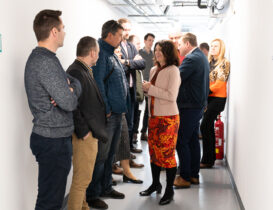 Po následné diskuzi Martina Řeháková a Sanin Zulić, představitelé týmu business development Centra HiLASE, představili možnosti spolupráci v rámci VaV projektů a transferu technologií. Petr Hauschwitz účastníky schůze seznámil s laserovými technologiemi pro biotech a představil dosavadní výsledky funkčního strukturování pro bio aplikace. Dále informoval o možnostech spolupráce na projektech zaměřených na antibakteriální povrchy na kovech a plastech. Po jeho přednášce se Jan Kaufman věnoval představení technologie Laser Shock Peening. Účastníci také měli příležitost navštívit experimentální haly Centra zaměřených na Laser Shock Peening a Laser Micromachining. Před závěrem schůze rovněž navštívili prostory sousedícího Inovačního centra Brain4Industry.